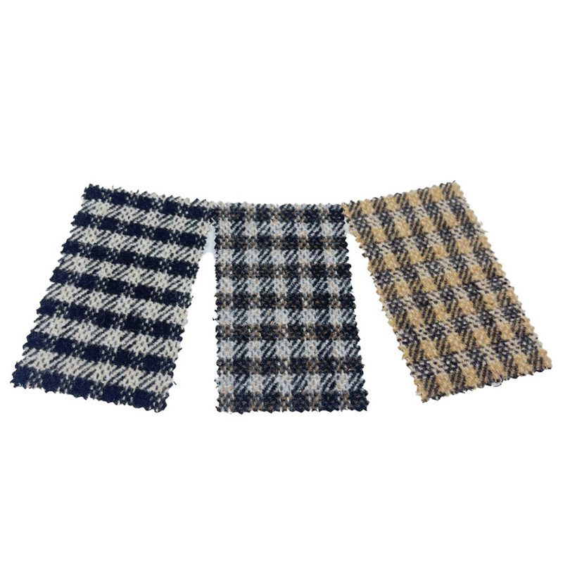 Ang telang ito, na itinalaga bilang artikulo 3811, ay isang tweed textile na binubuo ng 10% na lana at 90% ng iba pang mga hibla. Sa isang mass bawat yunit na lugar na 550 g/m, ito ay nagpapakita ng isang mabigat na konstruksyon. Nagtatampok ang kayumangging ibabaw ng check pattern na isinama sa twill weave base, na lumilikha ng mga diagonal na linya sa ilalim ng grid formation. Ang isang brushing finish ay inilapat sa tela, na nagpapataas ng mga hibla upang lumikha ng isang pinalambot na texture sa ibabaw. Binabago ng diskarteng ito ang mga katangian ng tactile ng tela habang pinapanatili ang integridad ng istruktura ng twill weave. Ang mga teknikal na detalye ay nagreresulta sa isang materyal na may pinagsamang visual na kahulugan ng pattern at pinahusay na pang-ibabaw na pakiramdam ng kamay, na ginagawa itong naaangkop para sa paggawa ng coat kung saan ang parehong tibay at tactile comfort ay kinakailangan.