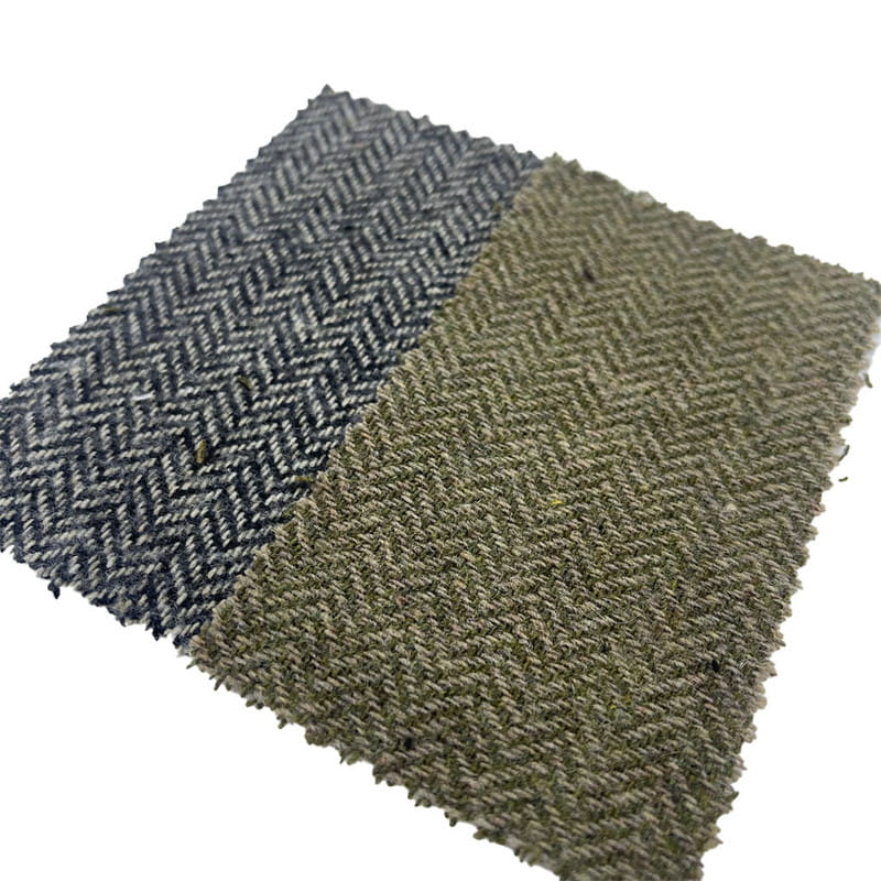 Ang telang ito, na itinalaga bilang artikulo 3531, ay isang tweed textile na binubuo ng 20% na lana at 80% ng iba pang mga hibla. Sa isang mass bawat yunit na lugar na 480 g/m, ito ay nagpapakita ng isang katamtamang timbang na konstruksyon. Nagtatampok ang ibabaw ng kulay abo at berdeng herringbone pattern, na nakuha sa pamamagitan ng isang partikular na pamamaraan ng paghabi na lumilikha ng tuluy-tuloy na hugis-V na motif. Ang weave structure na ito ay gumagawa ng diagonal rib effect sa ibabaw ng tela. Ang komposisyon ng timpla ng lana ay nakakatulong sa thermal regulation ng tela at paglaban sa kulubot. Ang mga teknikal na katangiang ito ay nagreresulta sa isang tela na may direksiyon na texture at integridad ng istruktura, na ginagawa itong naaangkop para sa pantalon kung saan kinakailangan ang kahulugan at tibay ng pattern.