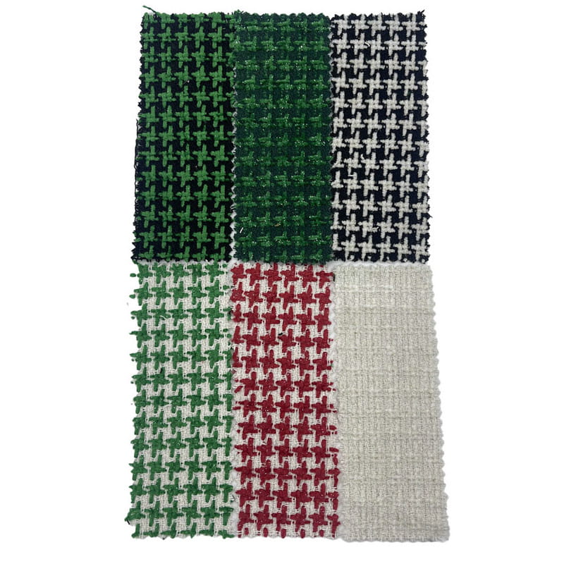 Ang telang ito, na itinalaga bilang artikulo 2410, ay isang jacquard na tela na binubuo ng 100% iba pang mga hibla. Sa isang mass bawat yunit na lugar na 550 g/m, ito ay nagpapakita ng isang mabigat na konstruksyon. Pinagsasama ng ibabaw ang metal na sinulid na may embossing technique, na lumilikha ng nakataas na pattern na nagbabago sa parehong visual at tactile properties. Ang proseso ng paghabi ng jacquard ay nagbibigay-daan para sa tumpak na pagsasama ng mga elemento ng metal sa disenyo. Ang paraan ng pagmamanupaktura na ito ay nagreresulta sa isang tela na may tinukoy na texture at light-reflective na katangian. Ang tinukoy na timbang ay nakakatulong sa tibay ng materyal at integridad ng istruktura. Ginagawa ng mga teknikal na katangiang ito na naaangkop ang jacquard fabric na ito para sa paggawa ng laruan kung saan kinakailangan ang visual na interes at materyal na katatagan.