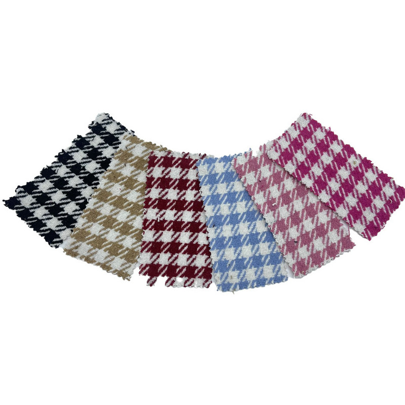 Ang telang ito, na itinalaga bilang artikulo 3741, ay isang twill woven textile na binubuo ng 10% na lana at 90% na iba pang mga hibla. Sa isang mass bawat yunit na lugar na 550 g/m, ito ay nagpapakita ng isang mabigat na konstruksyon. Nagtatampok ang ibabaw ng isang multi-color check pattern na isinama sa twill weave structure, na lumilikha ng mga diagonal na linya sa ilalim ng grid formation. Ang pamamaraan ng pagmamanupaktura na ito ay nagreresulta sa isang tela na may mga intersecting na banda ng kulay at isang katangian ng twill texture. Ang komposisyon ng timpla ng lana ay nag-aambag sa katatagan ng materyal at mga katangian ng thermal. Ginagawa ng mga teknikal na katangiang ito na naaangkop ang twill fabric na ito para sa mga tela sa bahay kung saan kinakailangan ang pattern visibility at tibay ng istruktura.